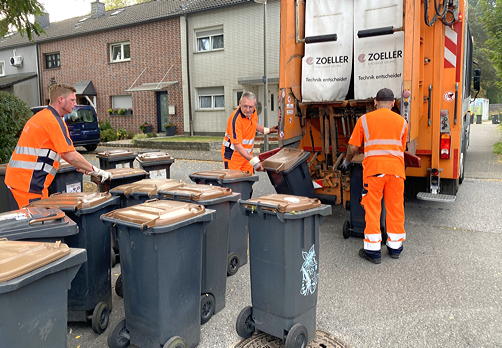 Bild: Bis zu 20 Behälter stehen nicht selten an einem Sammelplatz - da packen alle mit an. Fotos: Stadt Marl