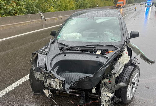 Aquaplaning auf der A 52: Totalschaden an Tesla