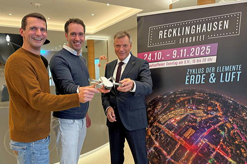 Auch Bürgermeister Christoph Tesche freut sich bereits auf die Shows: „Recklinghausen leuchtet ist mehr als ein Lichtspektakel – es ist ein Erlebnis, das unsere Stadt seit nunmehr 20 Jahren in ein leuchtendes Gesamtkunstwerk verwandelt. Die Drohnenshows setzen dabei immer besondere Akzente und versetzen die Besucherinnen und Besucher mit den Bildern, die gezeigt werden, jedes Jahr aus Neue in Erstaunen. Ich bin gespannt, wie das diesjährige Motto umgesetzt wird.“ Dies lautet bekanntlich „Erde und Luft“ und ist die Fortsetzung des „Elemente-Zyklus“. Im vergangenen Jahr war das Motto „Feuer und Wasser“.