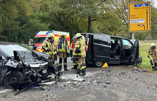 Am Dienstagnachmittag (21. Oktober) war es zu dem schweren Unfall auf der B 58 gekommen. Die Einsatzkräfte von Polizei, Feuerwehr und Rettungsdienst wurden gegen 15.20 Uhr zur Weseler Straße (B 58) in Höhe des Hofes Hawig alarmiert.