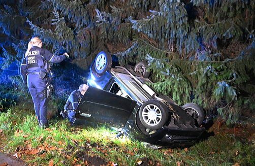 Der Wagen landete im Straßengraben, überschlug sich und blieb schließlich auf dem Dach liegen. Die junge Fahrerin und ihr Beifahrer aus Gladbeck, ebenfalls 17 Jahre jung, wurden vom Rettungsdienst und von der Freiwilligen Feuerwehr untersucht. Nach Auskunft der Polizei hatten sie Glück im Unglück, sie blieben unverletzt.