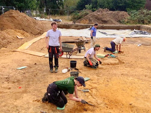 Bild: Die schon grabungserfahrenen Studenten konnten unter fachlicher Anleitung zahlreiche Gebäudestrukturen freilegen. Foto: R. Eckardt