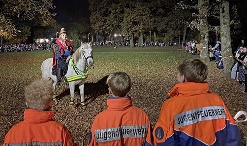 Dorsten. Der alljährliche Sankt Martin Umzug im Dorstener Ortsteil Barkenberg war wieder einmal ein voller Erfolg! Am Freitagabend, pünktlich um 18 Uhr startete der Umzug auf dem Wulfener Markt und zog von dort aus über den Napoleonsweg in Richtung Grüne Schule. Sandra Kötters, die dieses Jahr als „Martina“ fungierte, führte den Umzug zusammen mit ihrem Pferd an. Unterstützt wurde sie dabei von der Freiwilligen Feuerwehr Wulfen und der Jugendfeuerwehr.