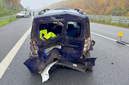 Auffahrunfall auf der A52 – Zwei Verletzte und Sperrung