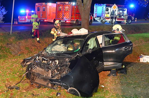Dabei kam der Renault von der Fahrbahn ab und kollidierte frontal mit einem Schildermast neben einer Ampelanlage. Anschließend kam der Pkw auf einem angrenzenden Feld zum Stillstand. Neben dem Ehepaar befand sich auch ein wenige Wochen alter Säugling im Fahrzeug.