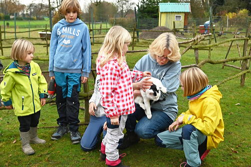 Seit einigen Jahren baut Mona Stadtmann, studierte Sozialpädagogin, gemeinsam mit ihren Eltern das pädagogische Angebot rund um Tiere, Natur und praktische Arbeit auf ihrem Hof am Präsenkamp stetig aus. Mona und ihre Mutter Agnes sind ausgebildete Bauernhofpädagoginnen, Vater Wilhelm steuert sein landwirtschaftliches Fachwissen bei.