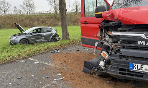 Die Rettungskräfte von Polizei, Feuerwehr (Löschzug Schermbeck) und Rettungsdienst wurden gegen 14:30 Uhr alarmiert. An der Einsatzstelle war es zu einem Verkehrsunfall mit einem Lieferwagen und einem geparkten PKW gekommen. Der Fahrer des Klein-Lkws (7.5t) wurde vor Ort von der Besatzung eines Rettungswagens untersucht. Glücklicherweise blieb er unverletzt. Die Polizei sperrte die Straße im Bereich der Einsatzstelle und nahm den Unfall auf. Beide Fahrzeuge waren nicht mehr fahrbereit und mussten abgeschleppt werden. Es entstand erheblicher Sachschaden.