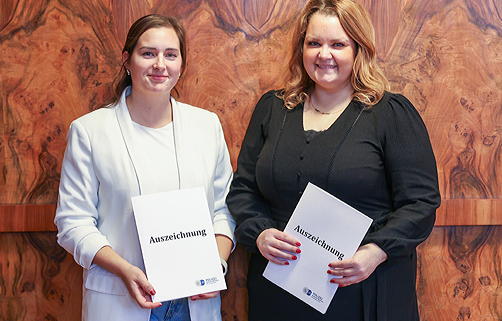 Caroline Bückemeier und Nadja Kolski hörten in ihrem Büro, dass Kinder um Hilfe riefen. Schnell erfassten sie, dass zwei Kinder sich in einem Teich am Lipper Weg in Marl befanden und verständigten die Rettungskräfte. Die Kinder konnten offensichtlich nicht schwimmen und gerieten immer wieder mit dem Kopf unter Wasser. Gemeinsam konnten sie die Kinder noch vor Eintreffen der Rettungskräfte aus dem Wasser ziehen und sind dabei selbst ins Wasser gegangen. Die Kinder waren leicht verletzt und unterkühlt, aber bei stabiler Gesundheit.