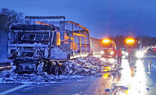 Lkw-Brand auf der A2 mit Sperrung und Staus
