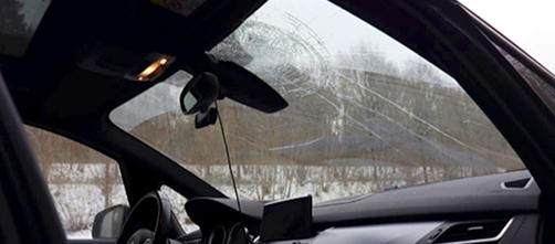 Bild: Windschutzscheiben können den herabfallenden Eisbrocken häufig nicht standhalten.