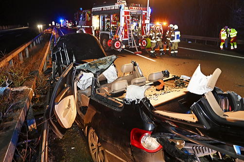 Da der Fahrer im Wagen eingeklemmt war, musste er von der Feuerwehr mit schwerem Rettungsgerät befreit werden. Auch ein Rettungshubschrauber landete an der Unfallstelle, um die Verletzten medizinisch zu versorgen. Der Lkw-Fahrer blieb nach ersten Erkenntnissen unverletzt, erlitt jedoch einen Schock.