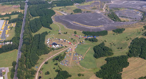 Das Luftbild zeigt die Hürfeldhalde beim Musikfest „Dorstival“ im Juli 2013. Im Vordergrund die bereits endgestalteten Bereiche, die zugänglich sind und sofort nutzbar wären, im Hintergrund die noch offenen Schüttbereiche. Foto: Detlev Wischerhoff