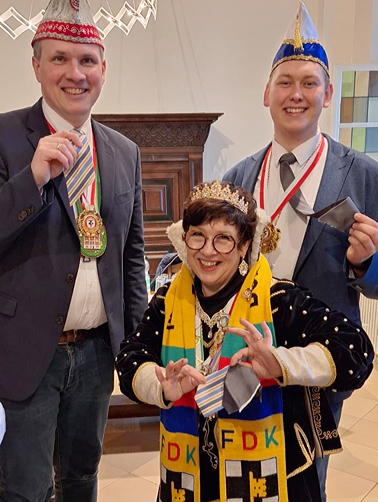 Bild: Stadtprinzessin Simone I. Stephan hat das Alte Rathaus erobert – mit ihr feiern auch Bürgermeister Tobias Stockhoff und Dorstens 1. stellv. Bürgermeister Jan Heppner.