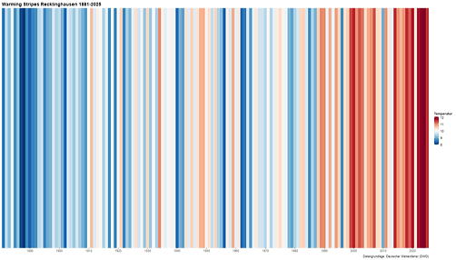 Bild: Die „Warming Stripes“ für Recklinghausen der Jahre 1881 bis 2025.