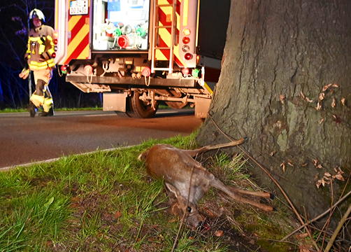 Einer der beiden Kradfahrer konnte nicht mehr rechtzeitig ausweichen und es kam zur Kollision mit dem Tier. Das Rehwild überlebte den Zusammenprall nicht. Der Kradfahrer kam samt seinem Motorrad zu Fall und verletzte sich wohl schwer. Er wurde noch vor Ort von einem Notarzt versorgt und kam zur weiteren Behandlung per Rettungswagen in ein Krankenhaus.