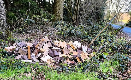 Dorsten. Eine ganze Ladung Bauschutt inklusive Schamottsteinen, die hauptsächlich für die Auskleidung von Brennräumen, beispielsweise für Kamine, benötigt werden, entdeckte unlängst der Dorstener Martin Böckenhoff. Die Ladung wurde in Lembeck am „Kaiserweg“, nahe der Einmündung „Heide“, illegal abgekippt