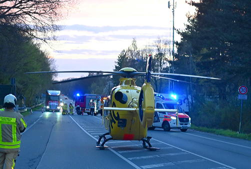 Nach der Erstversorgung durch eine Notärztin landete der Rettungshubschrauber „Christoph 8“ im Bereich Freudenberg auf der B58. Dafür musste die Bundesstraße durch die Feuerwehr vollständig gesperrt werden. Der Fahrer aus Wuppertal wurde anschließend mit dem Hubschrauber zur weiteren Behandlung in eine Klinik geflogen.