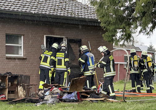 Schermbeck. Die Löschzüge Schermbeck und Altschermbeck wurden am Morgen des Ostersonntag mit dem Einsatzstichwort „Zimmerbrand“ zum Üfter Weg alarmiert. Dort stand ein Schlafzimmer in einem Anbau bereits in Vollbrand, als die ersten Rettungskräfte eintrafen.