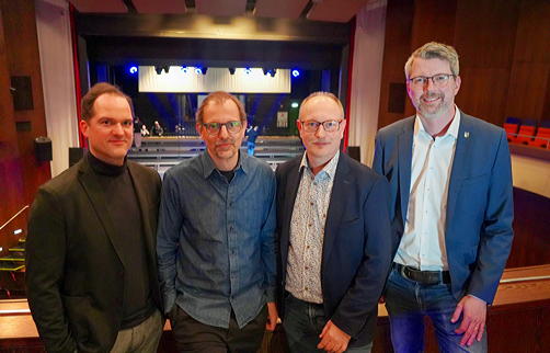Bild: Freuen sich auf die zahlreichen Inszenierungen der Ruhrfestspiele im Marler Theater: (v. l. n.r.) Theaterleiter Cornelius Demming, Intendant Olaf Kröck, Andreas Steinberg (Leiter des Amtes für Kultur und Weiterbildung) und Bürgermeister Thomas Terhorst.