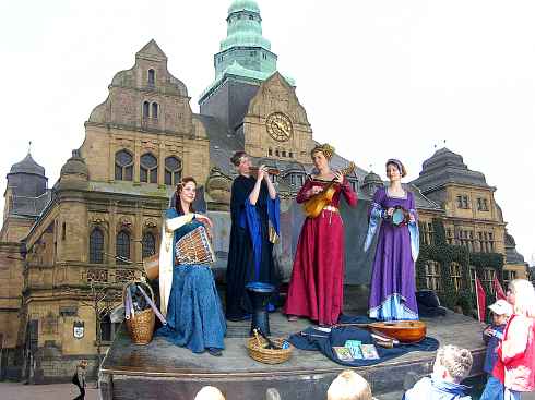 Während der gesamten Festmonate bietet die Stadt Rathausführungen an, jeweils am ersten Samstag im Monat. Geplant sind auch Spezialführungen für besondere Gruppen sowie eine Mitternachtsführung und eine Führung speziell für Kindern. Ihnen will Bürgermeister Pantförder bei Taschenlampenlicht spannende Recklinghäuser Sagen und Märchen auf dem Rathaus-Boden vorlesen.