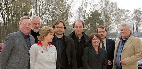 Haltern (om). Das ist ein klares Votum der SPD Haltern“, fasste SPD-Stadtverbandsvorsitzender Erwin Kirschenbaum den einstimmigen Beschluss der Halterner Genossen zur Unterstützung der Bundestagskandidatur von Michael Groß (4.v.l.) aus Marl nach der Vorstellung im Hotel Seehof zusammen. Wie bereits bekannt verzichtet die jetzige Bundestagsabgeordnete Waltraud Lehn aus gesundheitlichen Gründen auf eine erneute Kandidatur. „Mit Michael Groß aus der Nachbarstadt Marl haben wir schnell und zügig einen kompetenten Nachfolger gefunden, dessen fachliche Qualitäten und politische Erfahrung für sich sprechen“, betont SPD-Chef Erwin Kirschenbaum. Groß ist der stellvertretende Vorsitzende des Kreisverbandes der SPD und gleichzeitig Fraktionsvorsitzender im Rat der Stadt Marl. „Mit dem 52-Jährigen haben wir einen Kandidaten, der die Interessen der Kommunen in diesem Wahlkreis aus eigener Anschauung kennt und über seine berufliche Qualifikation als Geschäftsführer der Awo eine hohe fachliche Kenntnis in der bundespolitisch bedeutsamen Sozialpolitik vorweisen kann.“